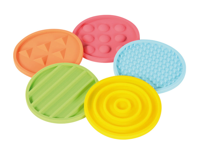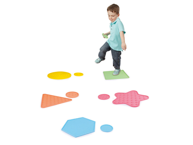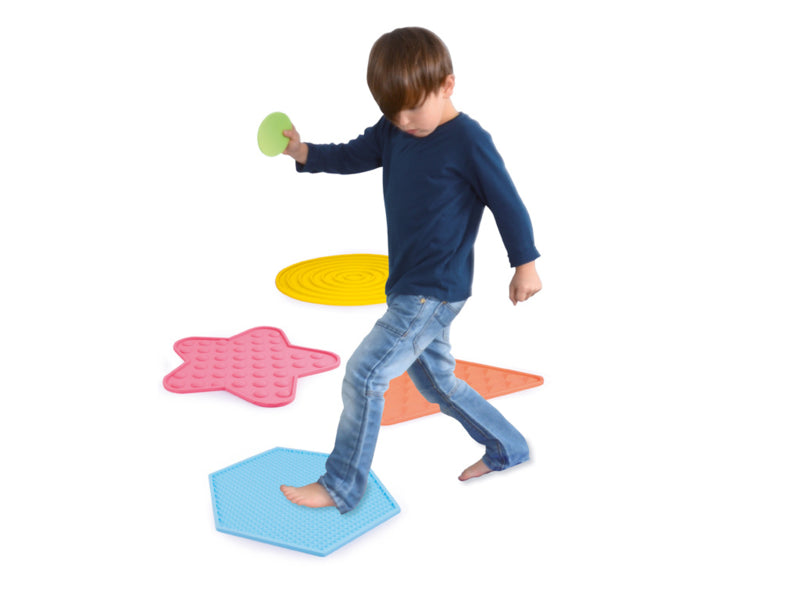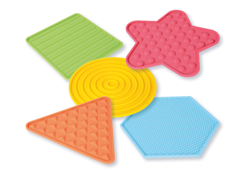 Met deze matten kunnen de kinderen met hun handen en voeten zien en voelen.