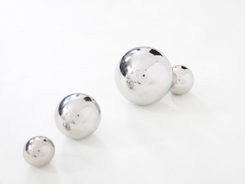 Set van 4 robuuste spiegelballen van hoogglanzend edelstaal.