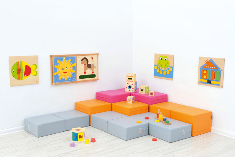 Set van 13 Poefjes div hoogtes en kleur - Paars/oranje/grijs