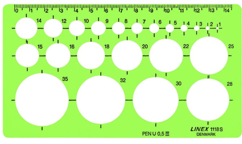 Sjabloon Linex 1118S 22 cirkels 1-35mm met inktvoetjes