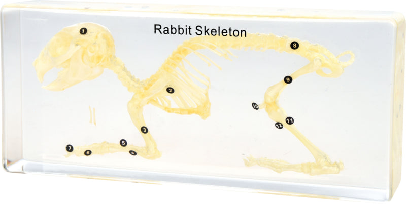 Natuurlijke skeletten van dieren (hagedis, konijn, duif, vis, pad) geplaatst in duurzaam plexiglas. Skeletten zijn nuttige leermiddelen die de implementatie van het biologie curriculum op verschillende onderwijsniveaus vergemakkelijken. Hiermee kunnen leraren laten zien hoe de botstructuur van het dier er uitziet, bijvoorbeeld hoe ze moeten bewegen. Bij de voorbereidingen zijn de belangrijkste skeletelementen gemarkeerd met nummers. De opgenomen legenda bevat de namen van de geselecteerde elementen in het Engels.