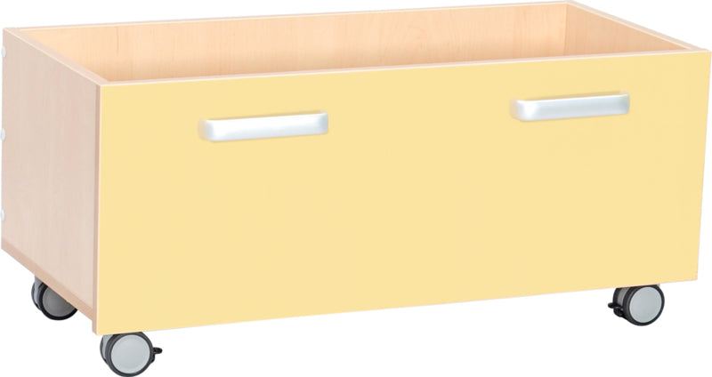 Functionele bak voor het opbergen van speelgoed en educatieve hulpmiddelen. Wielen maken het verplaatsen gemakkelijker. Gemaakt van gelamineerd spaanplaat in 8 kleuren (dikte: 18 mm), met ABS-randafwerking.