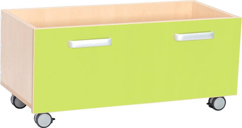 Functionele bak voor het opbergen van speelgoed en educatieve hulpmiddelen. Wielen maken het verplaatsen gemakkelijker. Gemaakt van gelamineerd spaanplaat in 8 kleuren (dikte: 18 mm), met ABS-randafwerking.
