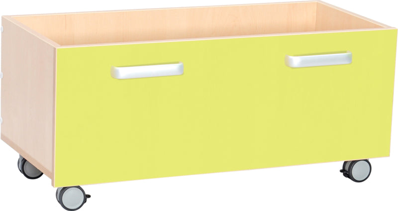 Functionele bak voor het opbergen van speelgoed en educatieve hulpmiddelen. Wielen maken het verplaatsen gemakkelijker. Gemaakt van gelamineerd spaanplaat in 8 kleuren (dikte: 18 mm), met ABS-randafwerking.