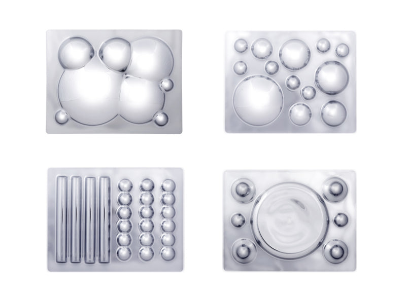Een set van 4 acrylspiegels met verschillende bollingen.