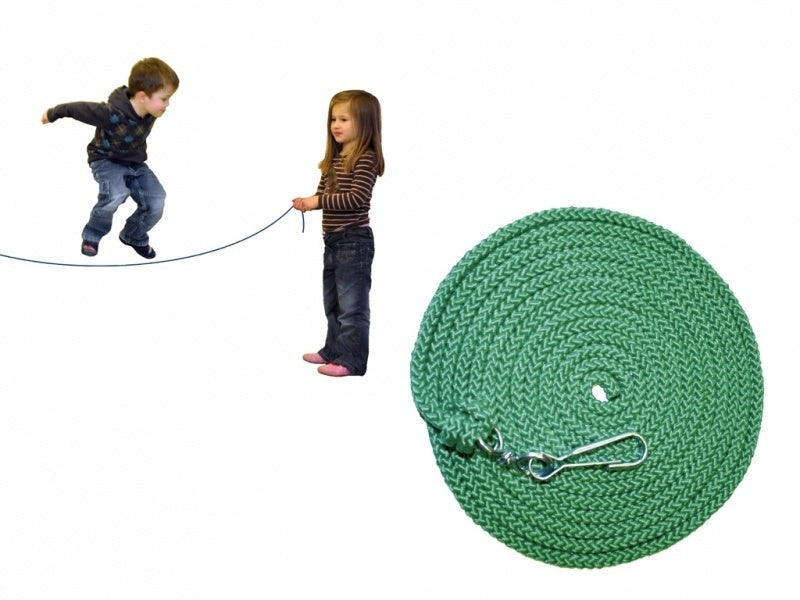 Springtouw met haak om ergens aan te haken, zodat maar één kind hoeft te draaien.