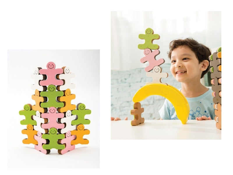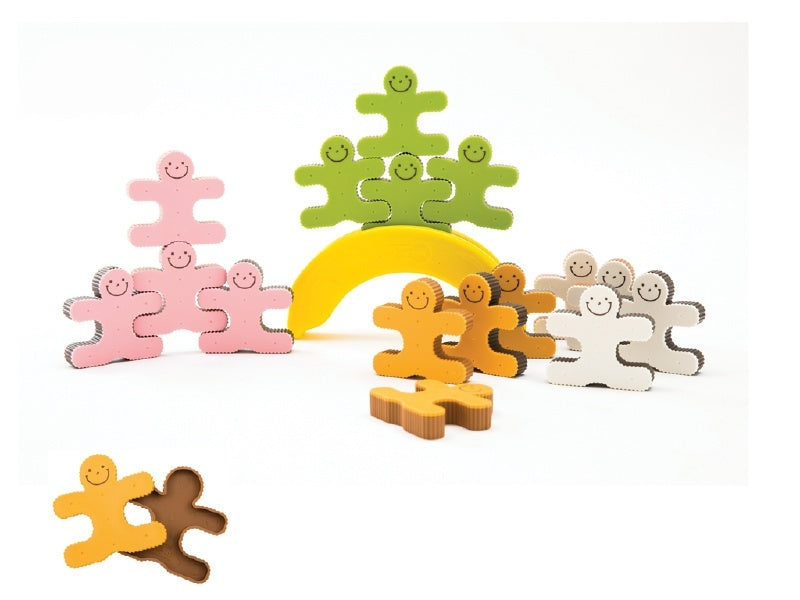 Deze vrolijk gekleurde mannetjes zijn op verschillende manieren stapelbaar.