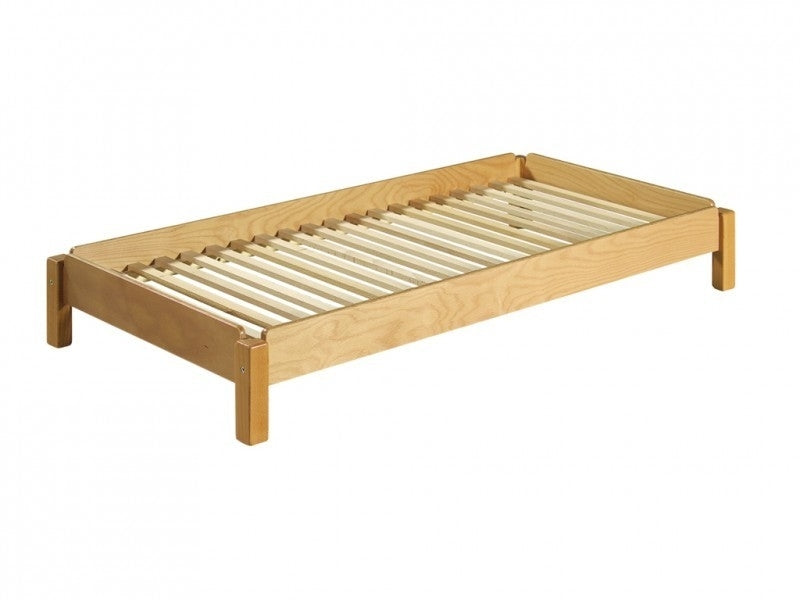 Massief beukenhouten stapelbaar bedje voor matrasmaat 120 x 60 cm.