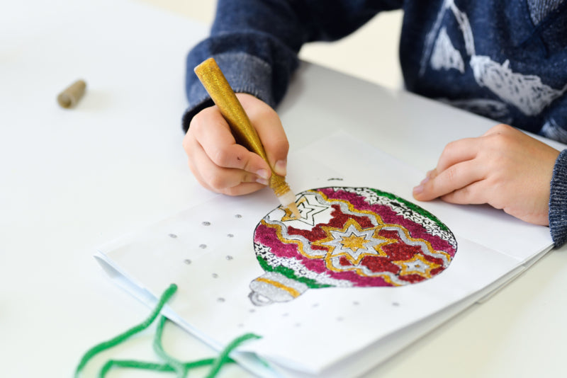 Met deze stempel kan het kind een mooie, feestelijke tekening maken. Druk gewoon op het vel, kleur het in naar eigen inzicht.