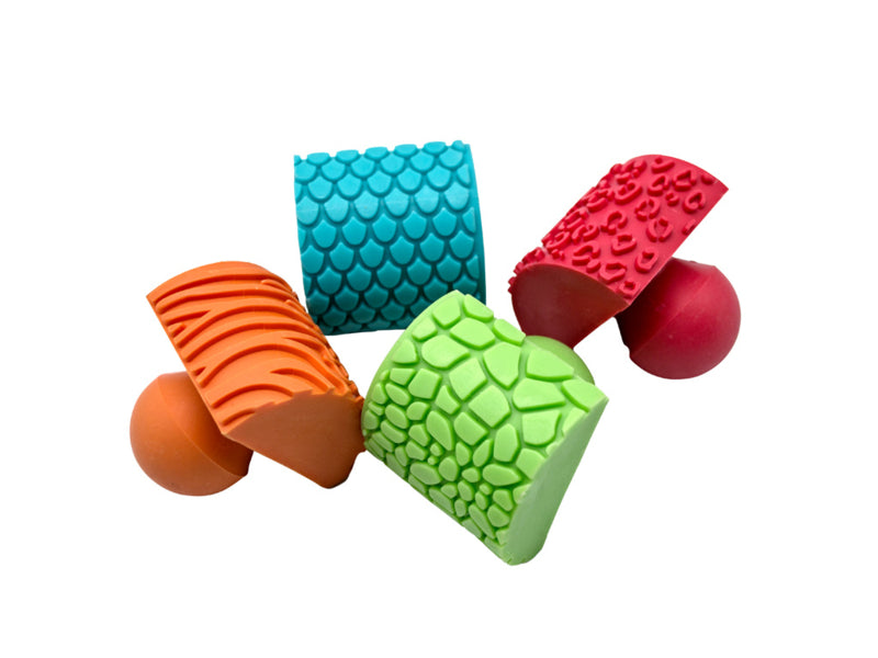Zebra, visschubben, krokodil, slang. Deze felgekleurde rubberen stempels zijn speciaal ontworpen voor kleine kinderen en hebben zachte, ergonomische handgrepen, ideaal voor kleine handen. Kan worden gebruikt met verf of klei. Ze zijn geweldig voor het ontwikkelen van de motorische en creatieve vaardigheden van kinderen en voor het creëren van fantasierijke kunst- en ambachtsprojecten.