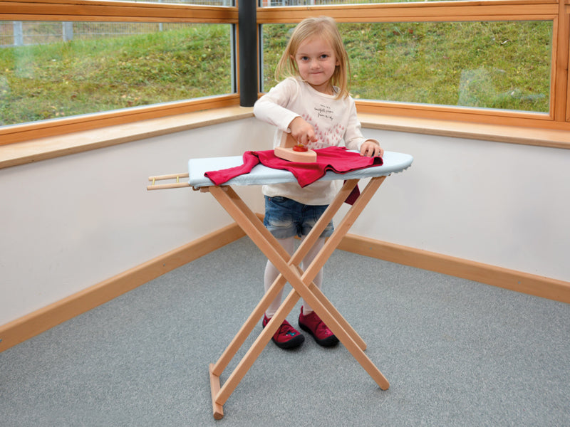 Inklapbare strijkplank met afneembaar dekje en strijkbout met "instelbare temperatuur".