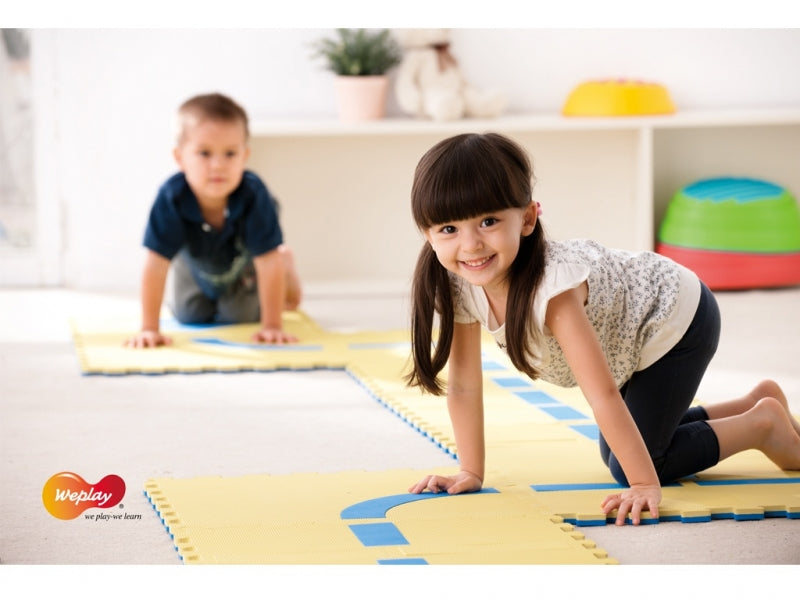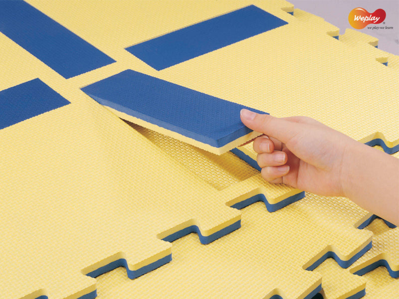 Ook de tegels kunnen gedraaid worden: de ene kant geel, de andere blauw.