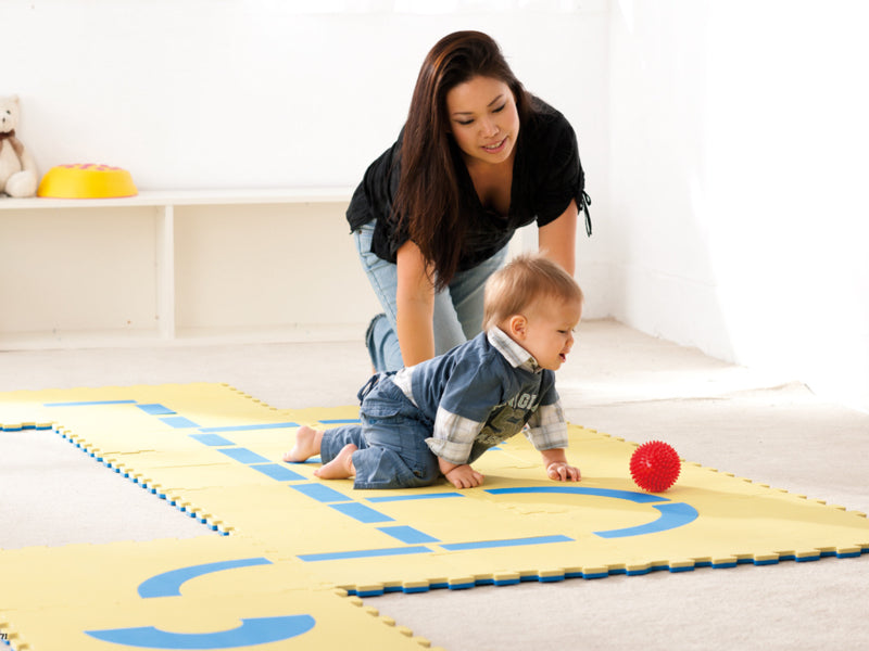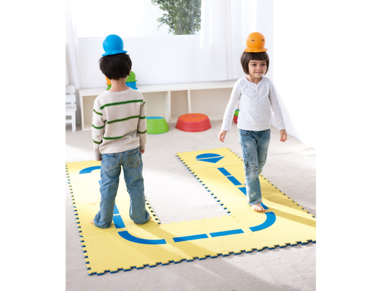 12 x puzzelmatten met ingezette elementen die gedraaid kunnen worden.