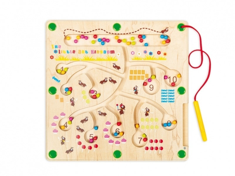 Met de magneetstaaf kunnen de balletjes naar het goede aantal en de goede kleur gebracht worden.