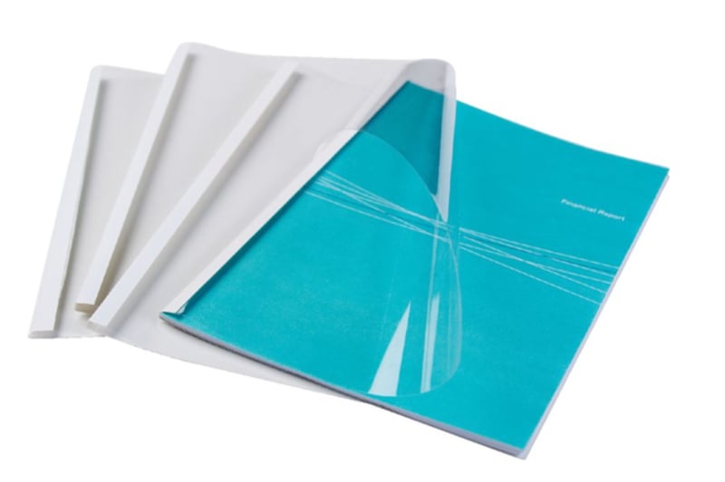 - Thermische omslag met transparante PVC voorzijde en glanzend wit achterblad.