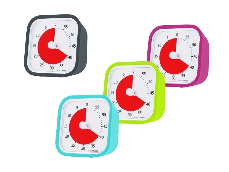 Deze gekleurde hoesjes worden separaat verkocht als aanvulling op de Time Timer Mod en zijn leverbaar in drie kleuren: fuchsia, turquoise blauw en lime groen.