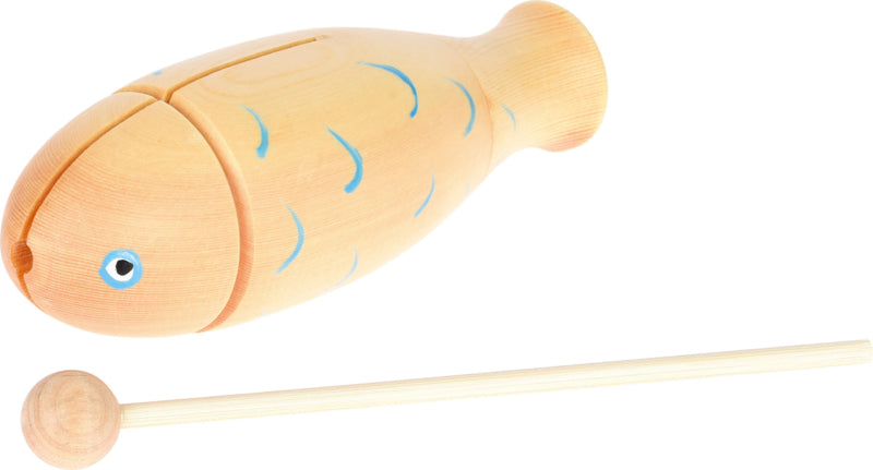 Houten toonblok in de vorm van een vis, met stok in de set (lengte 17,5 cm).