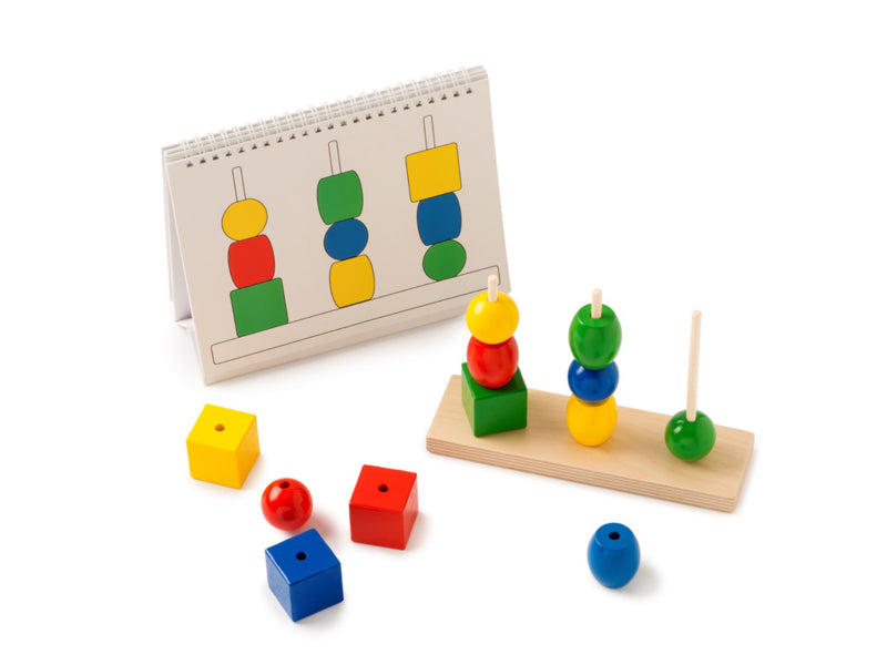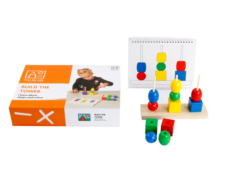 Reconstrueer torens volgens de afbeelding op de taakkaart. Oefen met het herkennen van verschillende vormen en kleuren, evenals het omzetten van een 2D-afbeelding in een 3D-figuur. Bevordert de oog-handcoördinatie en de fijne motoriek.