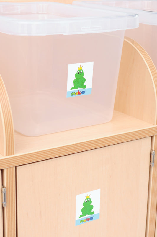 Transparante box voor het opbergen van educatieve hulpmiddelen, spelletjes en kleine items.