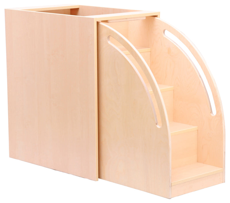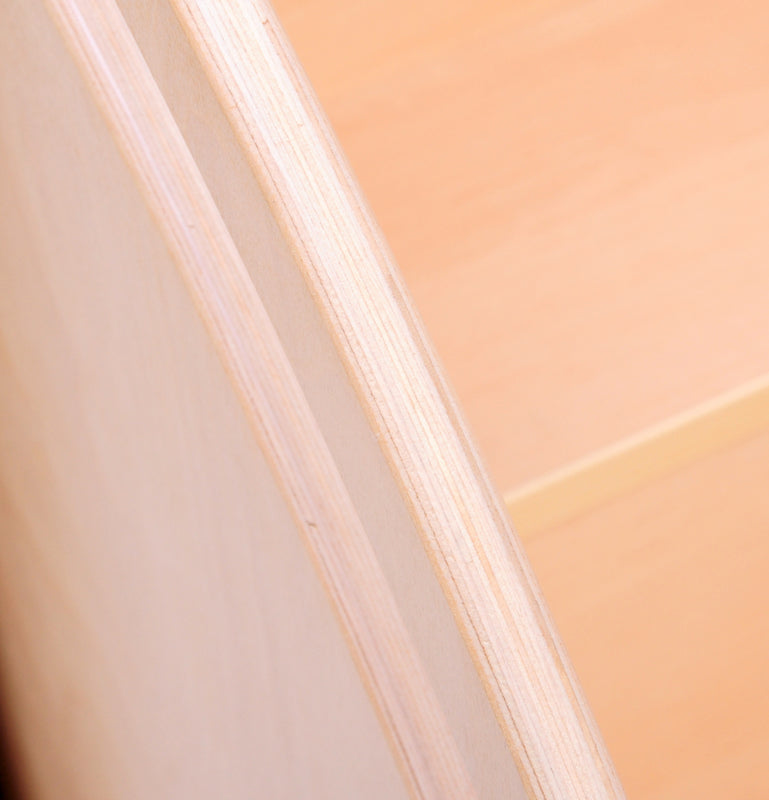 Gemakkelijk verplaatsbaar, met geïntegreerde wielen en veiligheidsgrepen aan beide zijden. Gemaakt van gelamineerd spaanplaat (dikte: 18 mm) in berken kleur, met ABS-randafwerking (dikte: 2 mm).