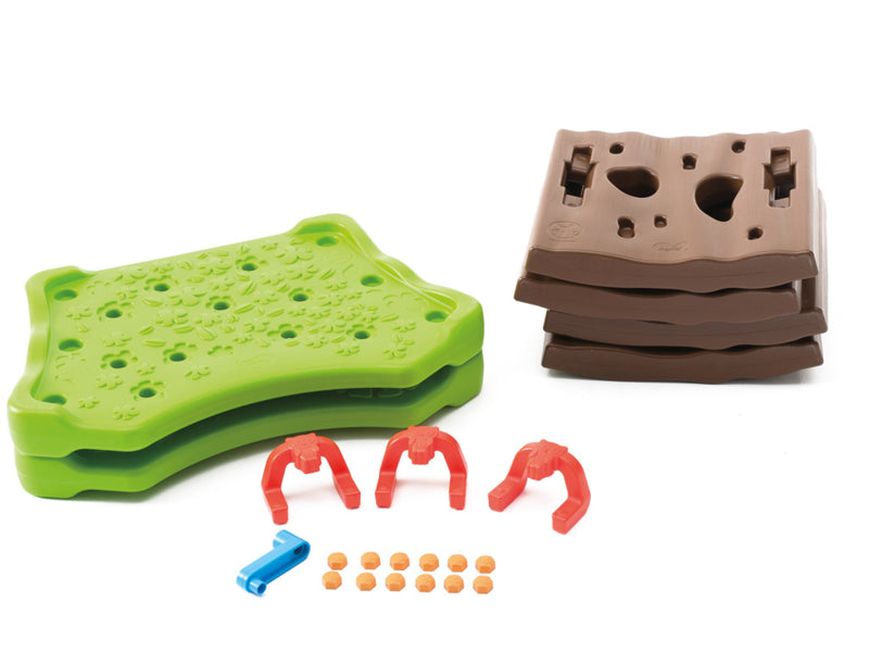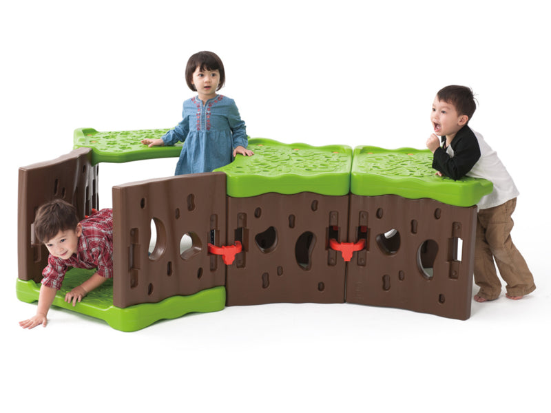Inhoud van 1 set.: 4 zijwanden bruin en 2 bloempatroon wanden groen, 12 bouten, 3 rode verbindingen, sleutel.