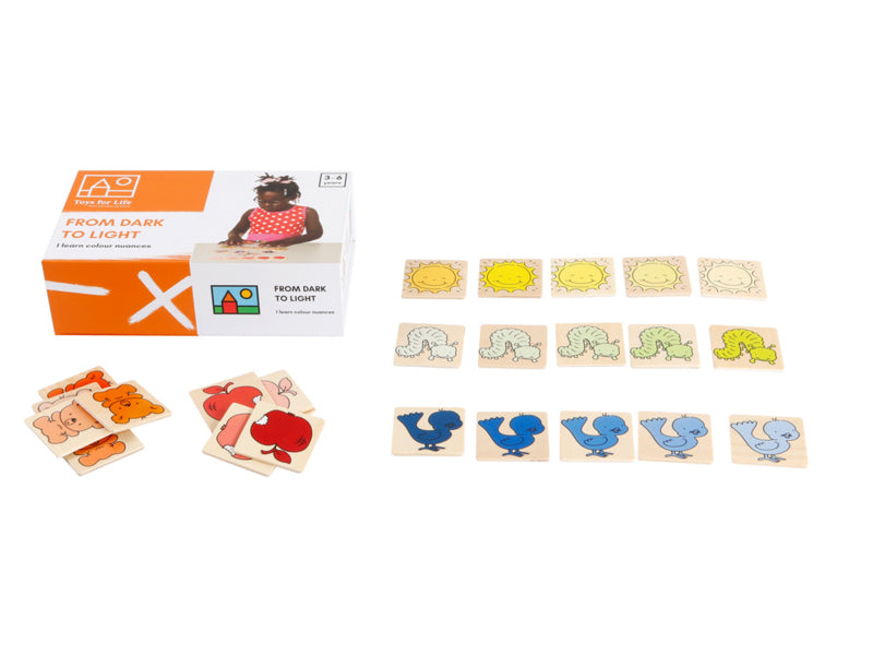 Sorteer de afbeeldingen in de volgorde donker naar licht of andersom. Bepaal welke kaart er het mooist uitziet, duidelijkere details bevat of het meest opvalt. Maak kennis met kleurnuances en hun effect op illustraties.