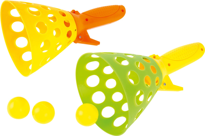 Set bestaat uit twee vangbekers met handgrepen, uitgerust met een mechanisme dat de ballen wegschiet. Een speler schiet de ballen en de andere vangt ze met de vangbeker.