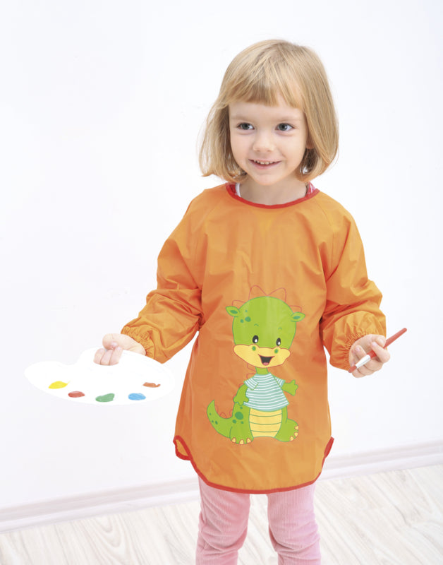 Beschermend schort met plastic mouwen, aan de achterkant vastgebonden.