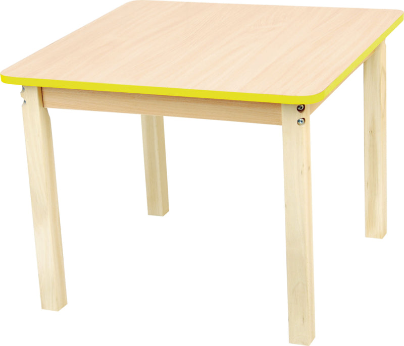 Vierkant esdoorn tafelblad met kleurrijke gele rand