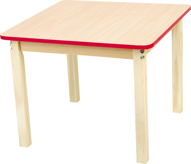 Vierkant esdoorn tafelblad met kleurrijke rand rood