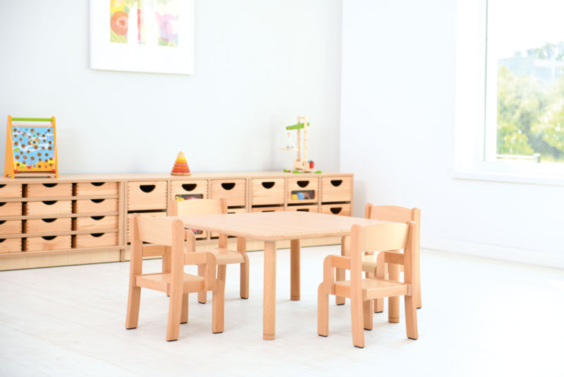 Leverbaar in 4 kleuren: beuken, geel, blauw en groen.