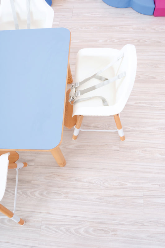 Vierkante Flexi tafel 80x80cm blauw in hoogte verstelbaar