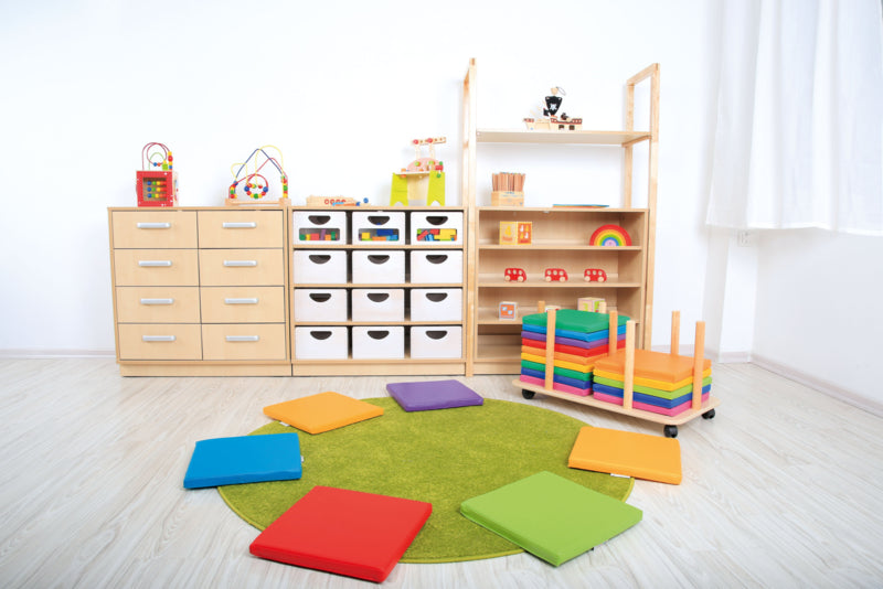 Kussens gemaakt van duurzaam vinyl of PU, gemakkelijk schoon te houden, gevuld met foam. Door de afmetingen van de kussens kunnen ze in een kast worden geplaatst ( art. 092749, 100710).