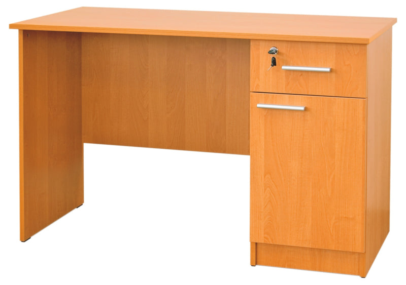 Vigo-bureau gemaakt van gelamineerd spaanplaat (dikte: 18 mm) in een beuken- of esdoornkleur, met randafwerking (dikte: 2 mm). Bevat een kast en een lade met slot.