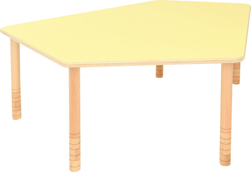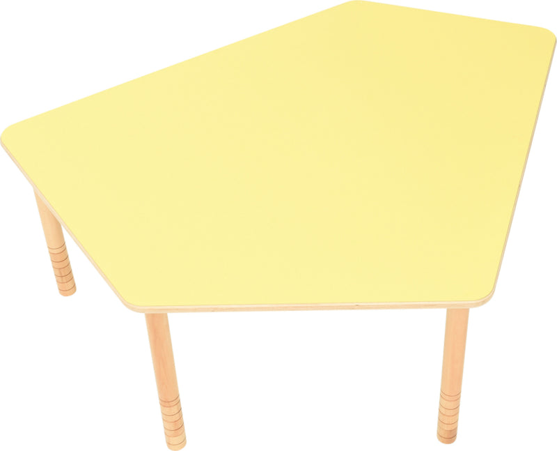Tafelblad van multiplex ( dikte 25mm), gelamineerd met kleurrijke HPL. HPL is een thermohardend materiaal, bestand tegen krassen en stoten, met een hoge weerstand tegen chemische middelen en hoge temperaturen.
