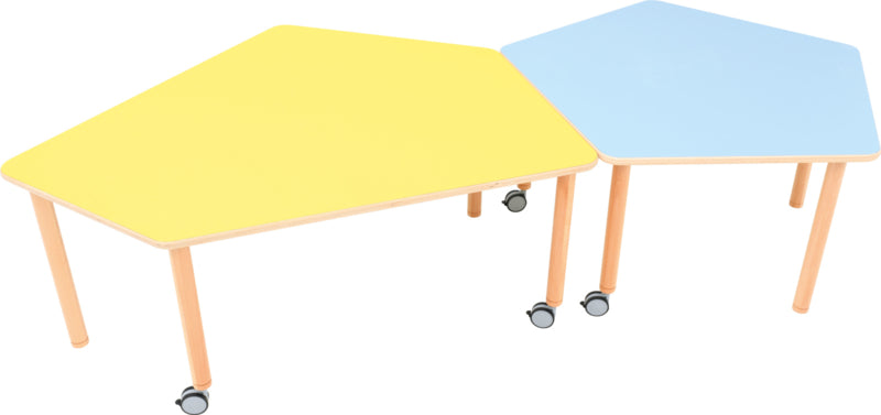 Van deze serie zijn eveneens verkrijgbaar een rechthoekige, ronde, halfronde, trapezium, driehoekig en vierkante tafel.