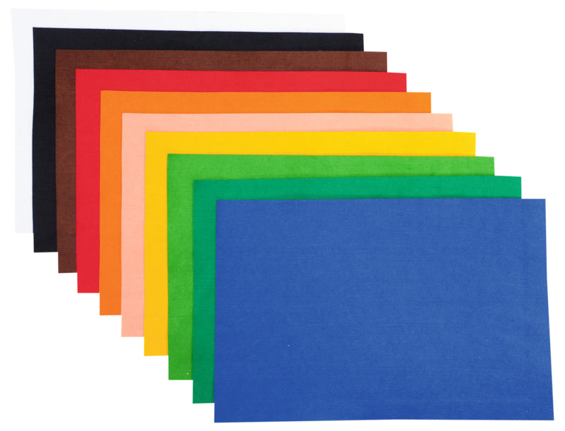 Set van 10 vellen in verschillende kleuren (groen, geel, zalm, wit, oranje, donkergroen, bruin, zwart, marine, rood).