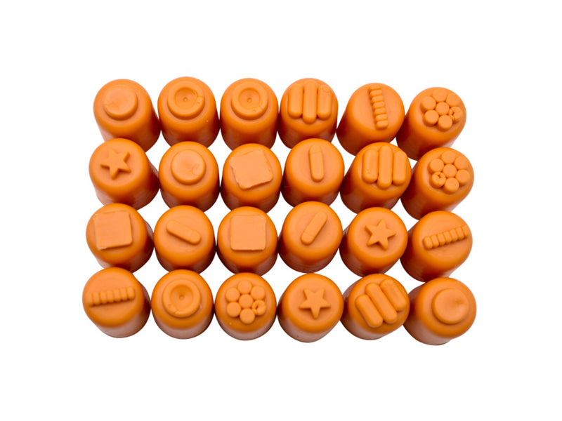 24 Vinger stempels ... 3 van elk ontwerp (vierkant, 1 lijn, 3 lijnen, cirkel, ring, ster, bloem, stippellijn). Deze vingerstempels zijn speciaal ontworpen voor gebruik door kinderen. Plaats de stempel eenvoudig op het uiteinde van een vinger, dompel deze in verf of een stempelkussen en druk het ontwerp vervolgens af op papier of kaart. Probeer een patroon te maken door verschillende patronen en kleuren op elkaar te stapelen of een kleine rand te maken voor een afbeelding of verhaal. De vingerstempels zijn gemaakt van rubber, duurzaam en gemakkelijk schoon te maken. Ze kunnen ook worden gebruikt met boetseerklei.