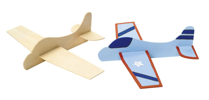 Houten vliegtuigjes, 3 delen die in elkaar geschoven kunnen worden. Geschikt om te versieren, kleuren, beplakken en veel andere technieken.
