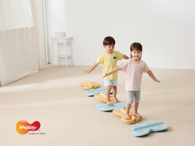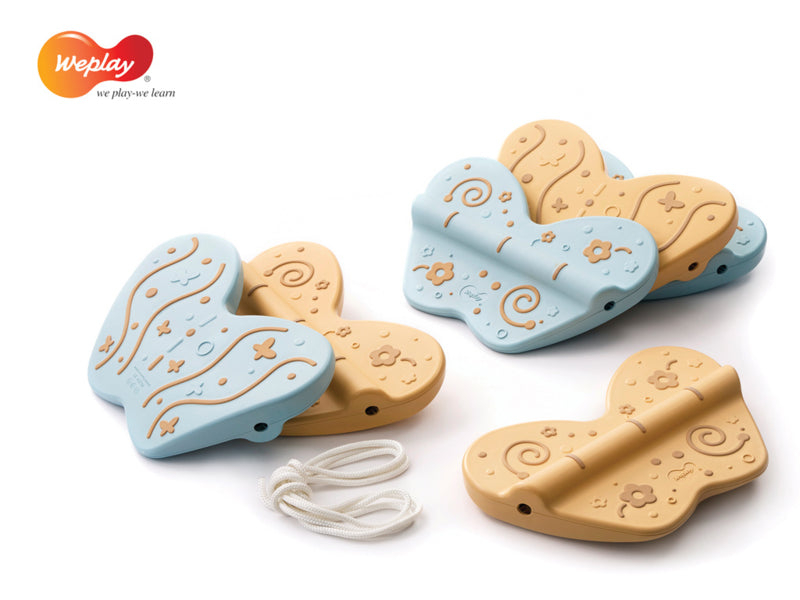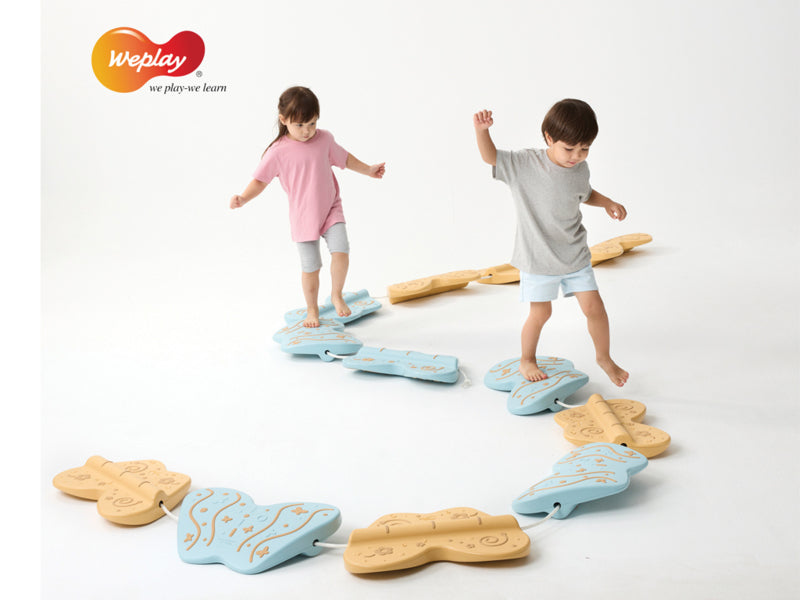 De afzonderlijke balans elementen hebben de vorm van vlinders. Vanwege het gebogen oppervlak en de hoogte aan de andere kant, kan de moeilijkheidsgraad worden aangepast van licht wiebelig tot schommelend, waardoor het evenwichtsgevoel en het reactievermogen worden getraind en vergroot. De vlinders kunnen vrij op elke afstand worden geplaatst, kunnen in de lengte en kruislings achter elkaar worden geplaatst of kunnen met een touw worden verbonden. De bredere voorvleugel en smallere achtervleugel vereisen dat kinderen zich concentreren op hun stappen terwijl ze langs het pad lopen. De coördinatie van de armen ten opzichte van elkaar wordt bevorderd. Het verhoogde antislippatroon aan de voor- en achterkant stimuleert de tastzin en zorgt voor vertrouwen bij het balanceren.