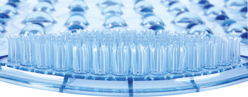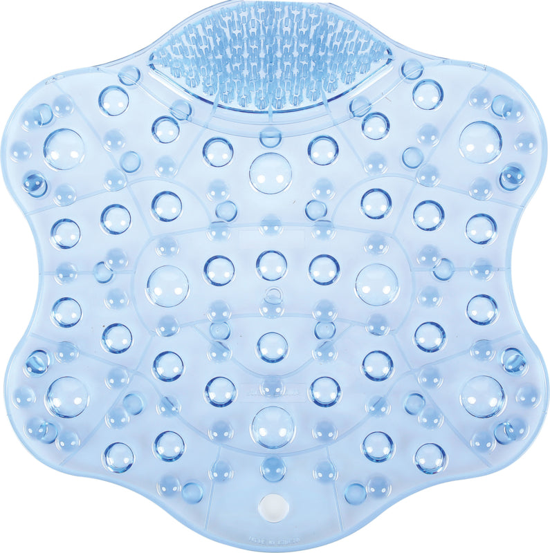 Rubberen mat voor voetmassage en verbetering van de veiligheid. De mat heeft een zware textuur met verhoogde gebogen vormen die de voeten masseren en de bloedsomloop bevorderen. De mat blijft veilig op zijn plaats dankzij kleine zuignapjes aan de onderkant.
