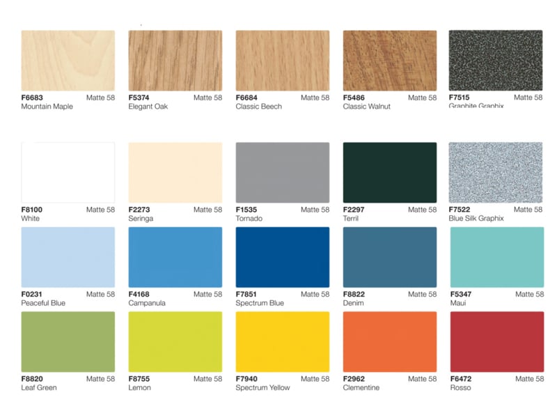 De tafel/zit units zijn in verschillende modellen en kleuren leverbaar.