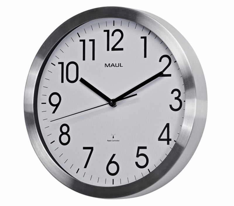 Wandklok MAUL Move RC Ø30,5x4.5cm aluminium/wit incl.batterij