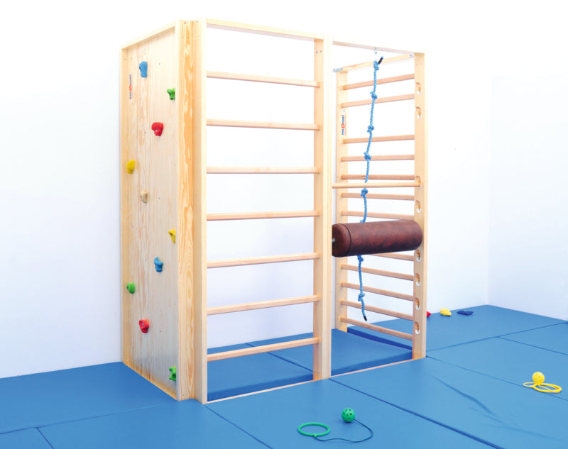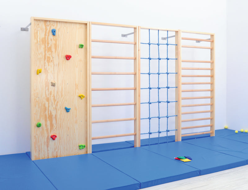 Esthetisch gemaakt rek voor verschillende soorten fysieke oefeningen en fitnessactiviteiten.
