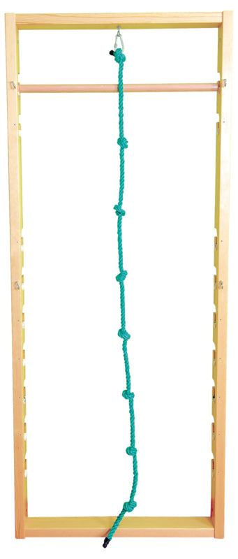 Esthetisch gemaakt wandrek voor verschillende soorten fysieke oefeningen en fitness activiteiten. In het midden hangt een touw, waarop kinderen kunnen klimmen en visueel-motorische oefeningen kunnen doen. Het rek heeft één beweegbare sport.