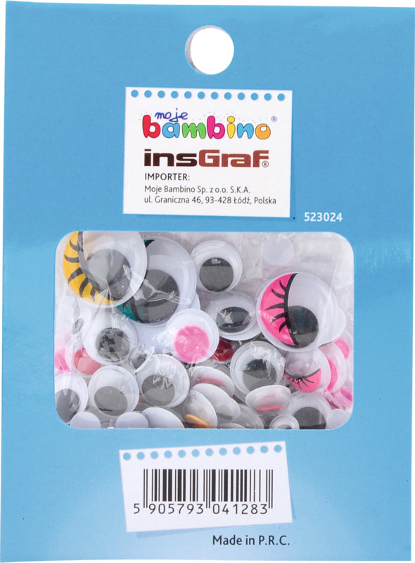 Kleine, plastic ogen met of zonder zwarte wimpers.