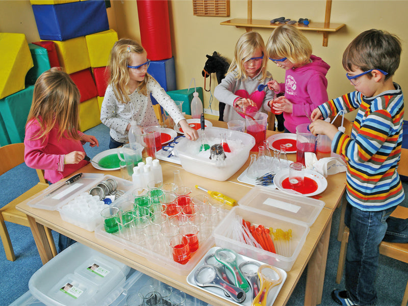 Met deze experimenteerbox kunnen kinderen spannende dingen zelf ontdekken met voor kinderen geschikte, maar echte laboratorium materialen.