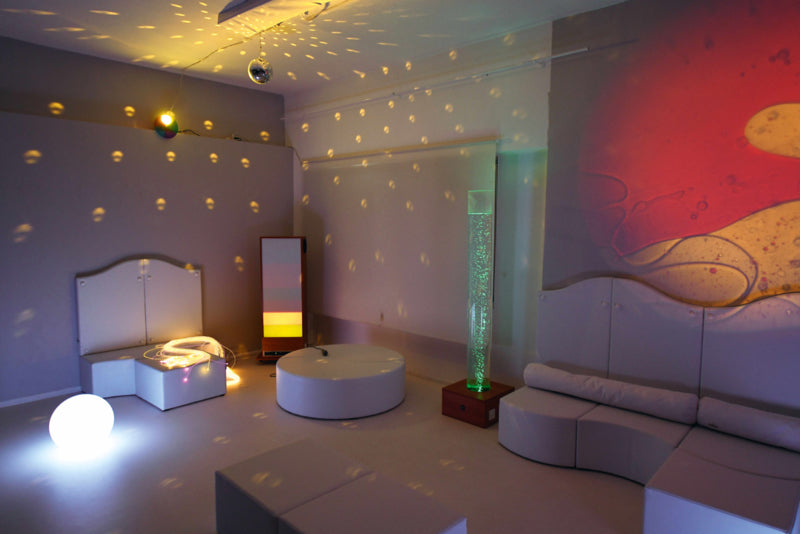 Comfortabele poefs in verschillende vormen en hoogtes. Ze zullen helpen bij het creëren van een rust- en ontspanningsruimte. Na installatie van het apparaat dat muziek of licht uitzendt kan het worden gebruikt als een plaats die zintuigen stimuleert en activeert. Gemaakt van foam, bedekt met duurzaam vinyl of PU, gemakkelijk schoon te houden.