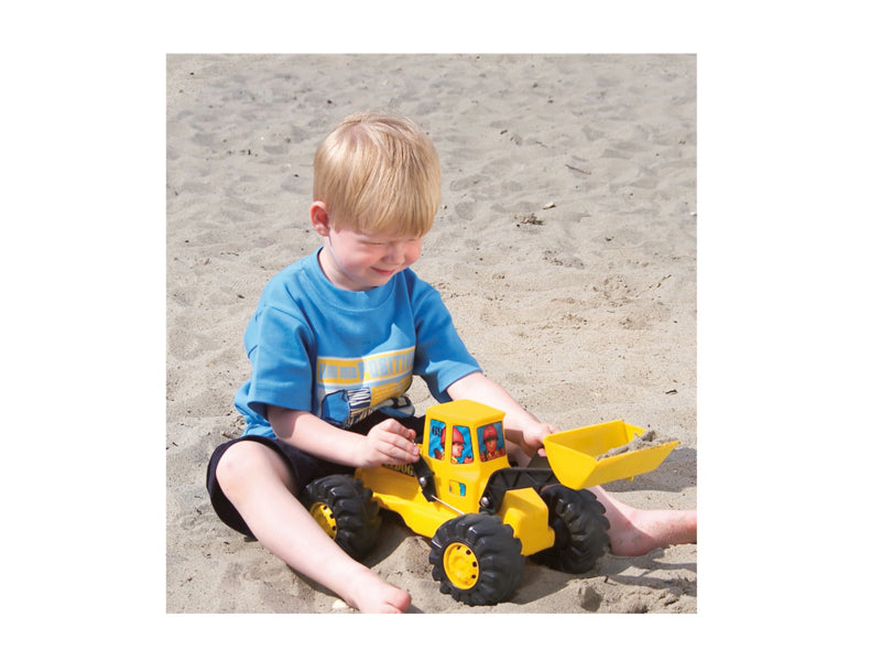 De kinderen hebben snel onder de knie hoe ze de hendel moeten gebruiken om de schop te bedienen om zand en andere bouwmaterialen op te rapen en weer uit te laden op hun bestemming.