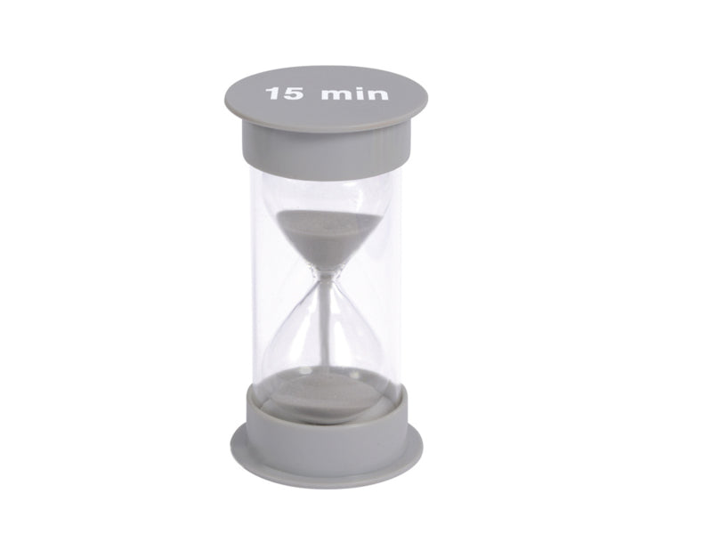 Zandloper 15 minuten. in frisse kleur en bijpassende kleur zand.